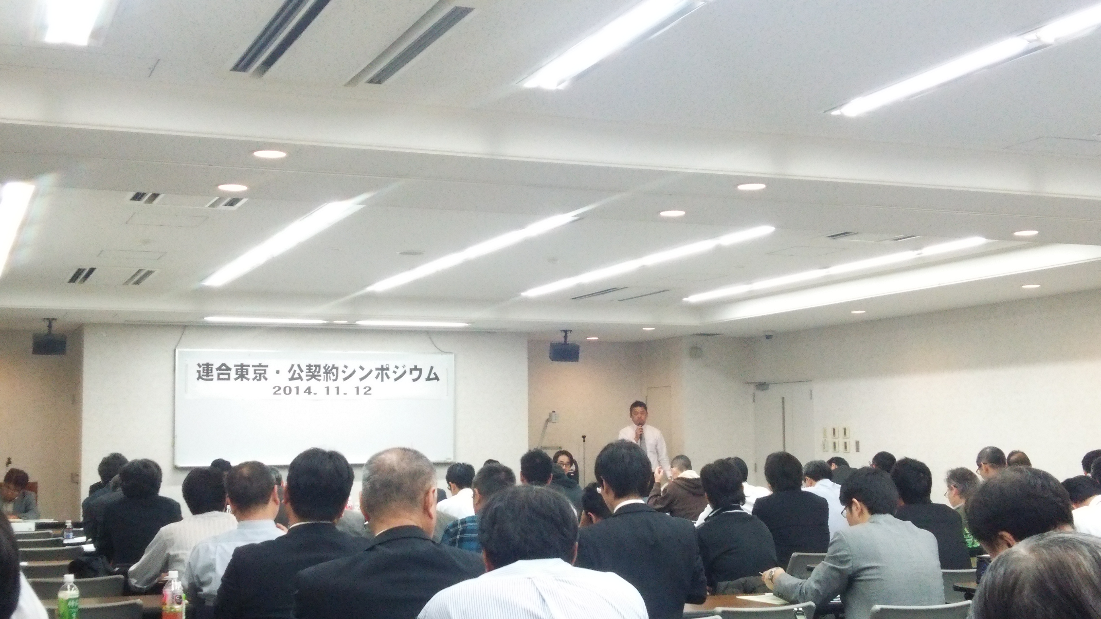 今日は連合東京が主催の公契約条例のシンポジウムに参加をしてきました。場所は田町交通会館です。
