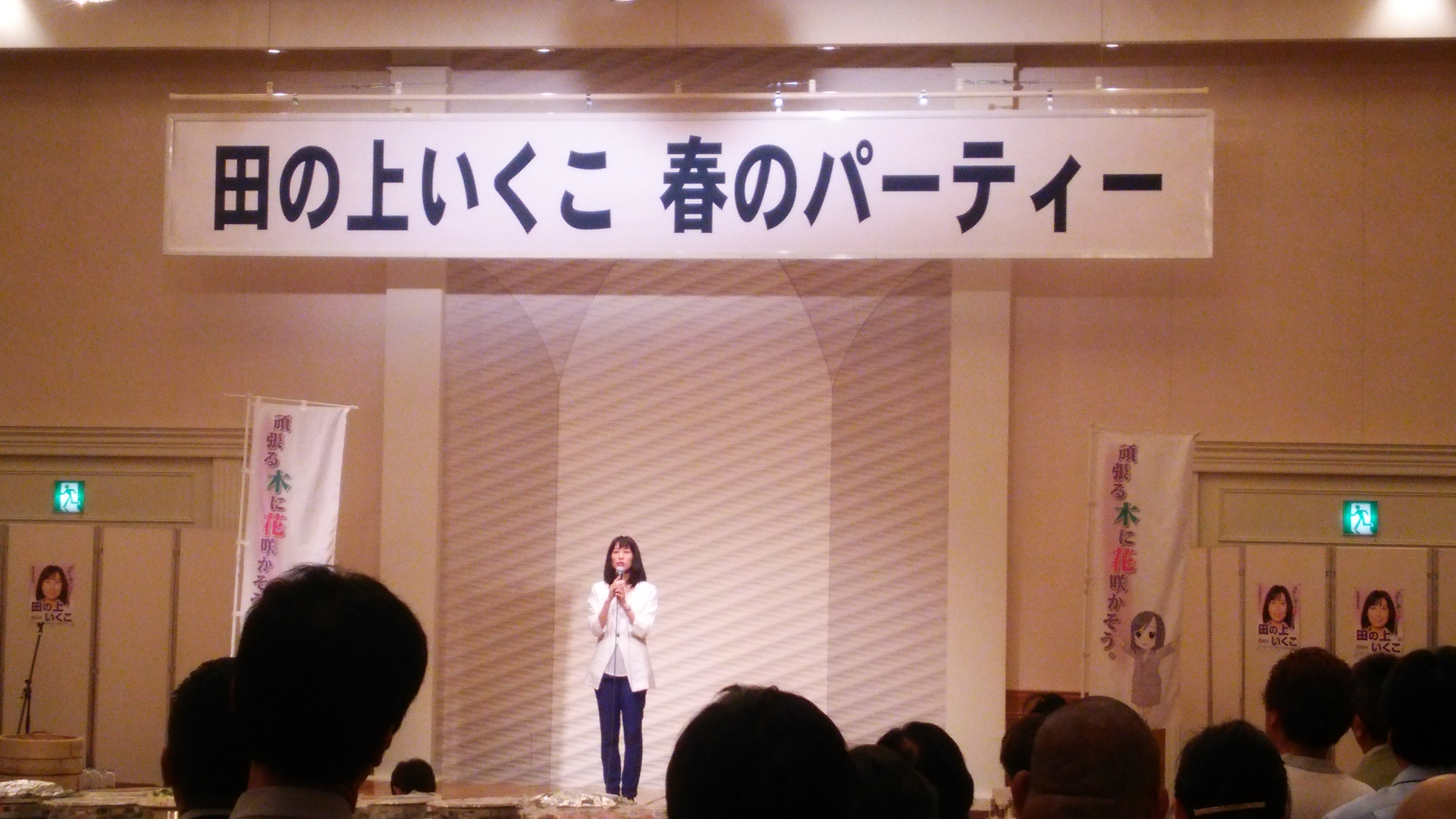 今日は江戸川区の船堀タワーで行われた「前都議会議員 田の上いくこ 春のパーティー」に出席してきました。
