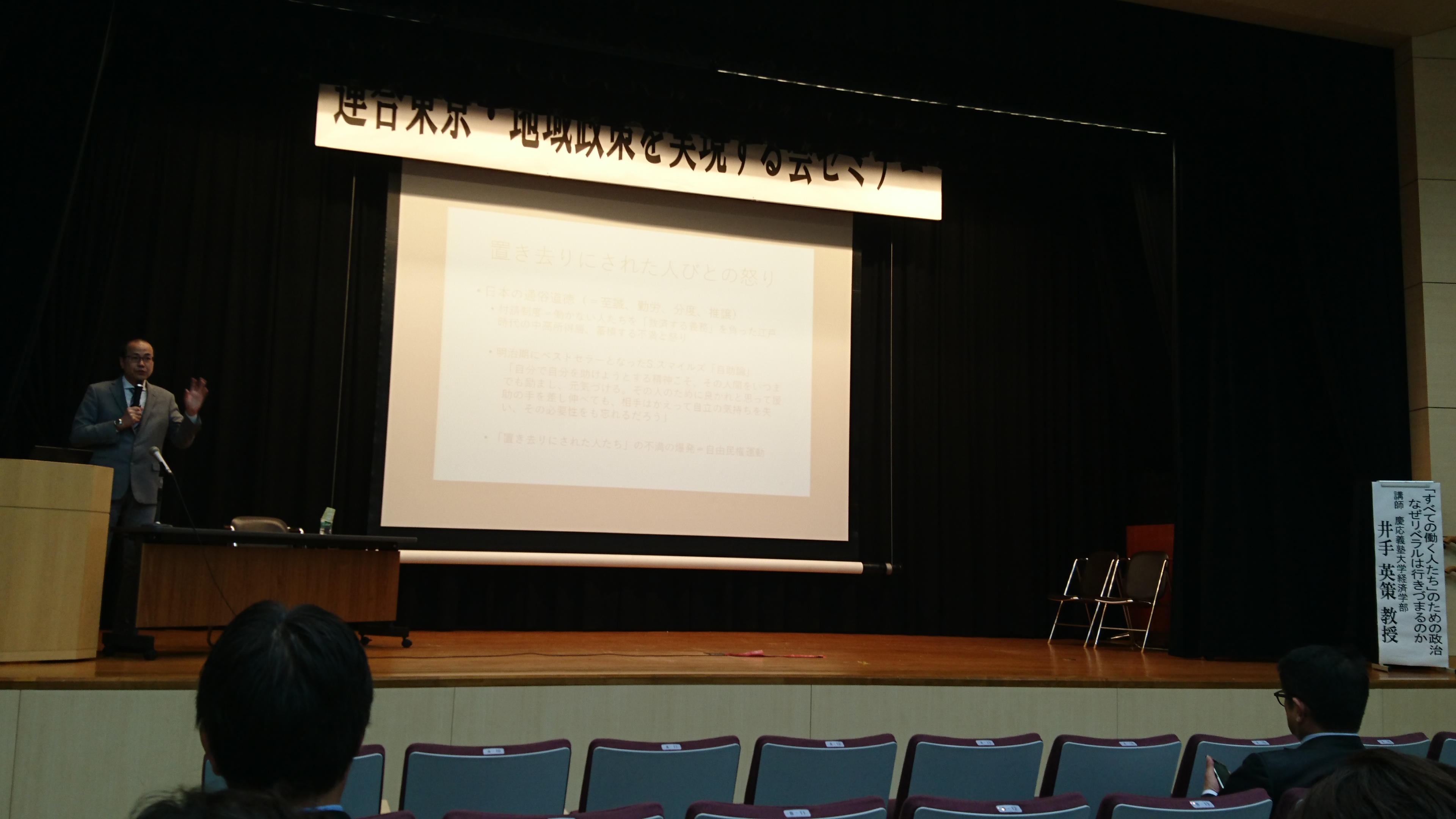 慶應義塾大学経済学部教授 井出英策教授の講演。
