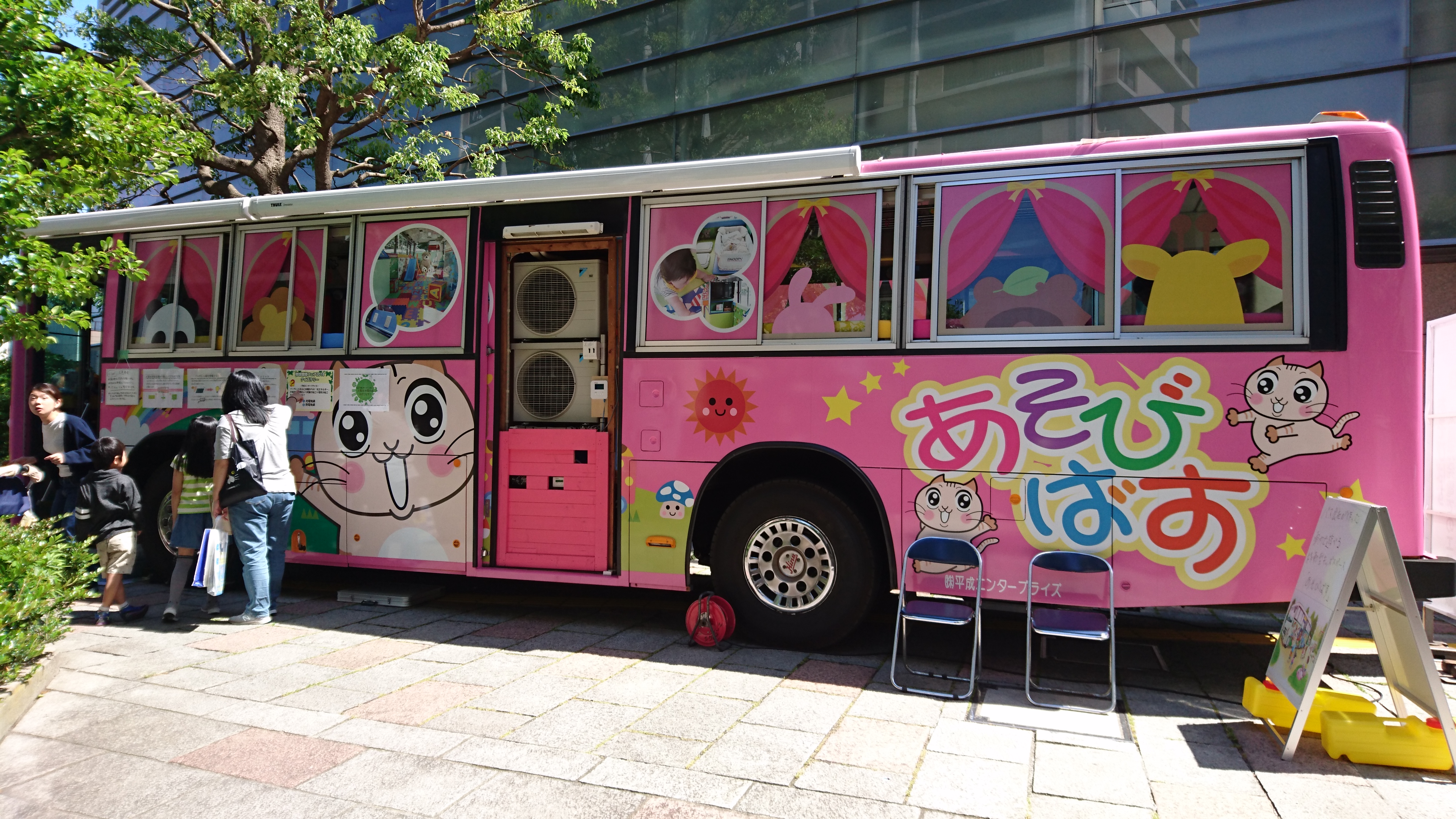 体験型ブースでは、観光バスなどを運営している平成エンタープライズさんの「遊びバス」が出展されました。小さい子どもたちやお母さん、お父さんに大人気です!