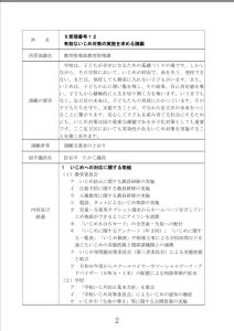 内容及び経過のところでございます。項番1、いじめへの対応に関する取組でございます。