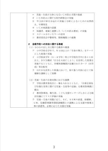 項番2のところで、併せて自殺予防の対応に関する取組、SOSの出し方に関する教育のほか、自殺企図や自傷行為などがあった場合には、教育委員会だけではなくて、衛生部、それから福祉部等と連携をいたしまして、情報共有の上、支援に当たっているところでございます。