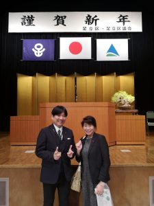 足立区内でご活躍の様々な職種の皆さまともお会いし、たくさんのご挨拶をすることができました。※お写真の皆さまは、日頃から足立区の教育や都政、区政に貢献されている皆さまです。