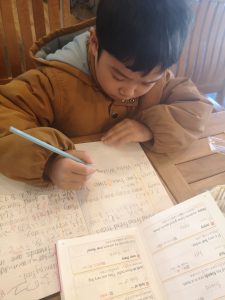三女が6歳の時と学びの感じ方が違うようです。三女の時は『何故、どうして〜』が多くて、決まりを教えるところから教えないといけなかったのですが、長男は、既に理解できていてサクサク進みます。その代わり、『ママ、ネズミはスペイン語で何ていうか知ってる?』となぞなぞをしてくるので、ママは調べないとわからない〜。