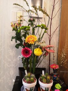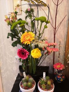 🌼カダイアンサス、ヒペリカム、レースフラワー、アルストロメリア、菊、ガーベラ、スプレー菊、アリアムコワリー、チューリップ🌸