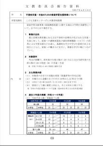 ◎教育指導部長 そのような形で、間違いなく派遣した回数に応じて、見える形でお支払もします。どの子も8回できるわけではないと聞いておりますけれども、なるべくその子に応じて手厚く支援できるように努めてまいります。