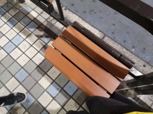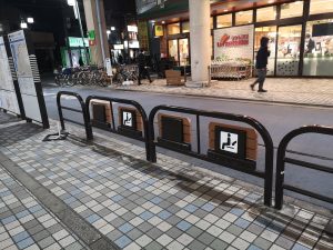 通路にある折りたたみベンチも中村けいこ区議会議員の発案で設置となり、放置自転車を無くすことに成功しました。